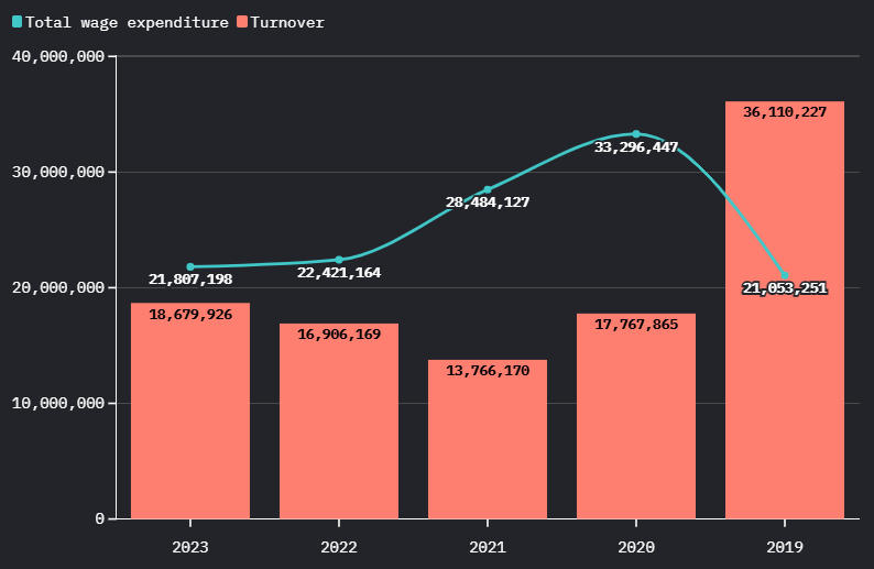 2020 was the worst year for it, with £33,296,447 being spent on wages, but only £17,767,865 was actually brought in revenue wise.